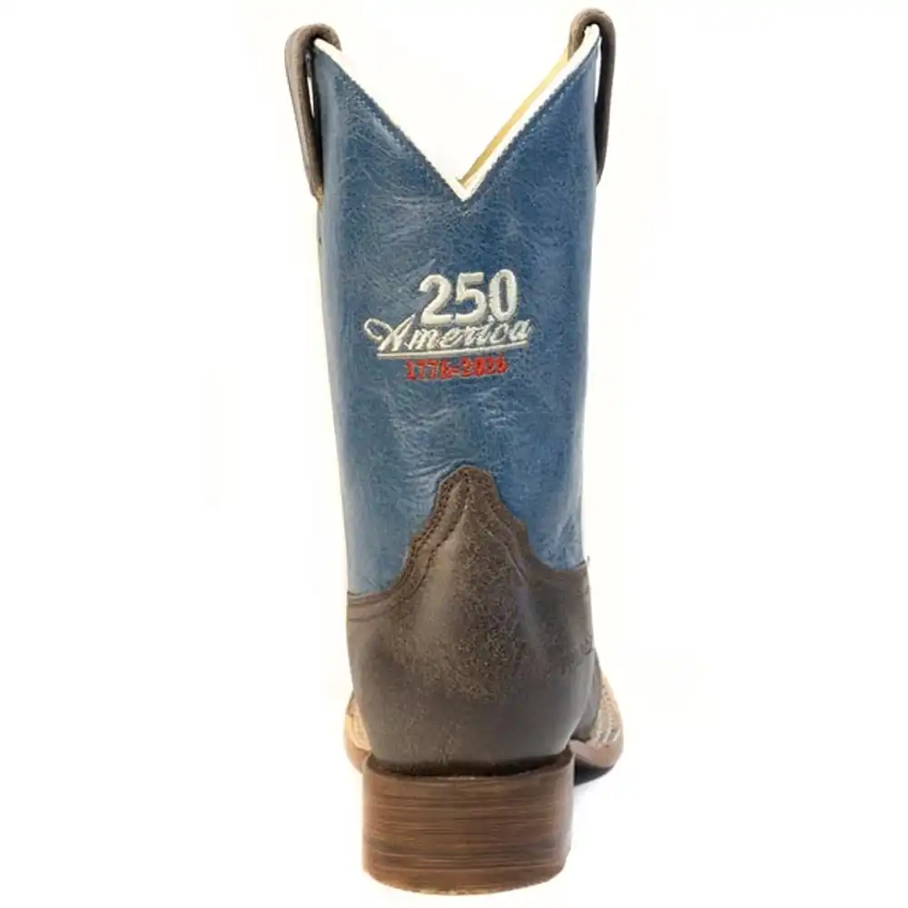 Embroidered American Flag On Vintage Blue Leather Shaft