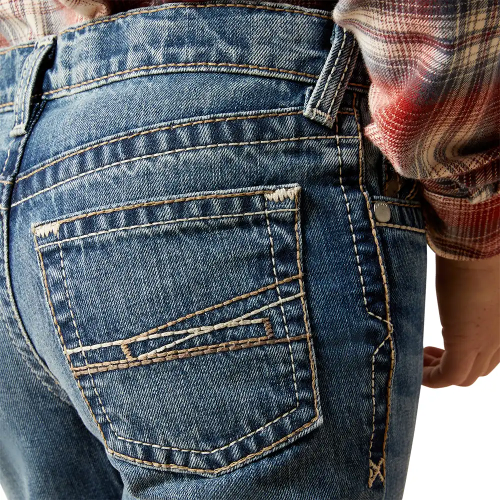 The comfortable, durable jeans Ariatยฎ is known forโin his perfect size. This slim-fitting pair is made for riding, playing, or just running around.