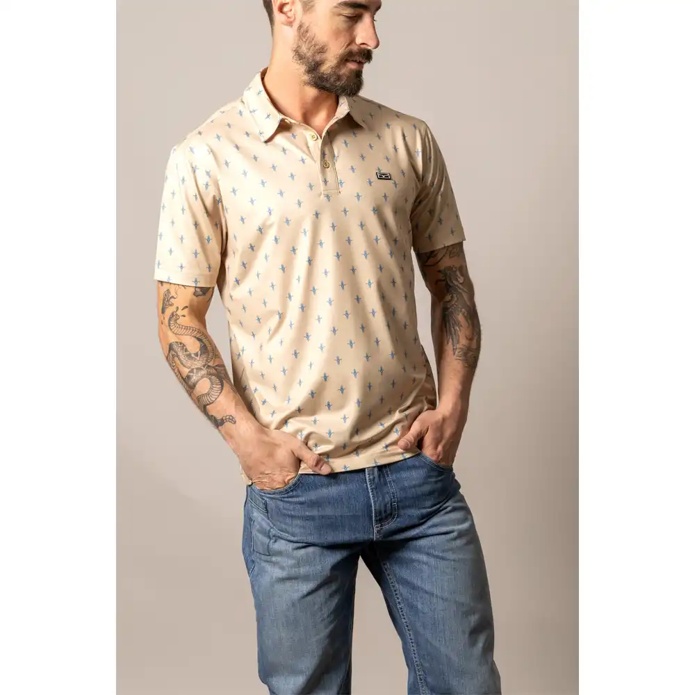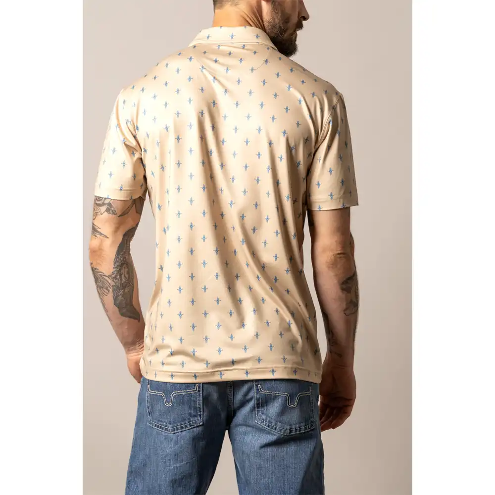 This is a sophisticated shirt crafted for ultimate comfort. This material is very soft and light, perfect for warmer days. Featuring a collared neckline with an adjustable button placket, youโre able to customize your fit and feel. The Bartram is a short-sleeve polo designed to transition easily between wardrobes that are more on the sporty side, to others that prefer a sleek, Western style. Available in neutral-colored, all-over patterns, this shirt offers a fresh take on classic style, adding subtle interest to your look.