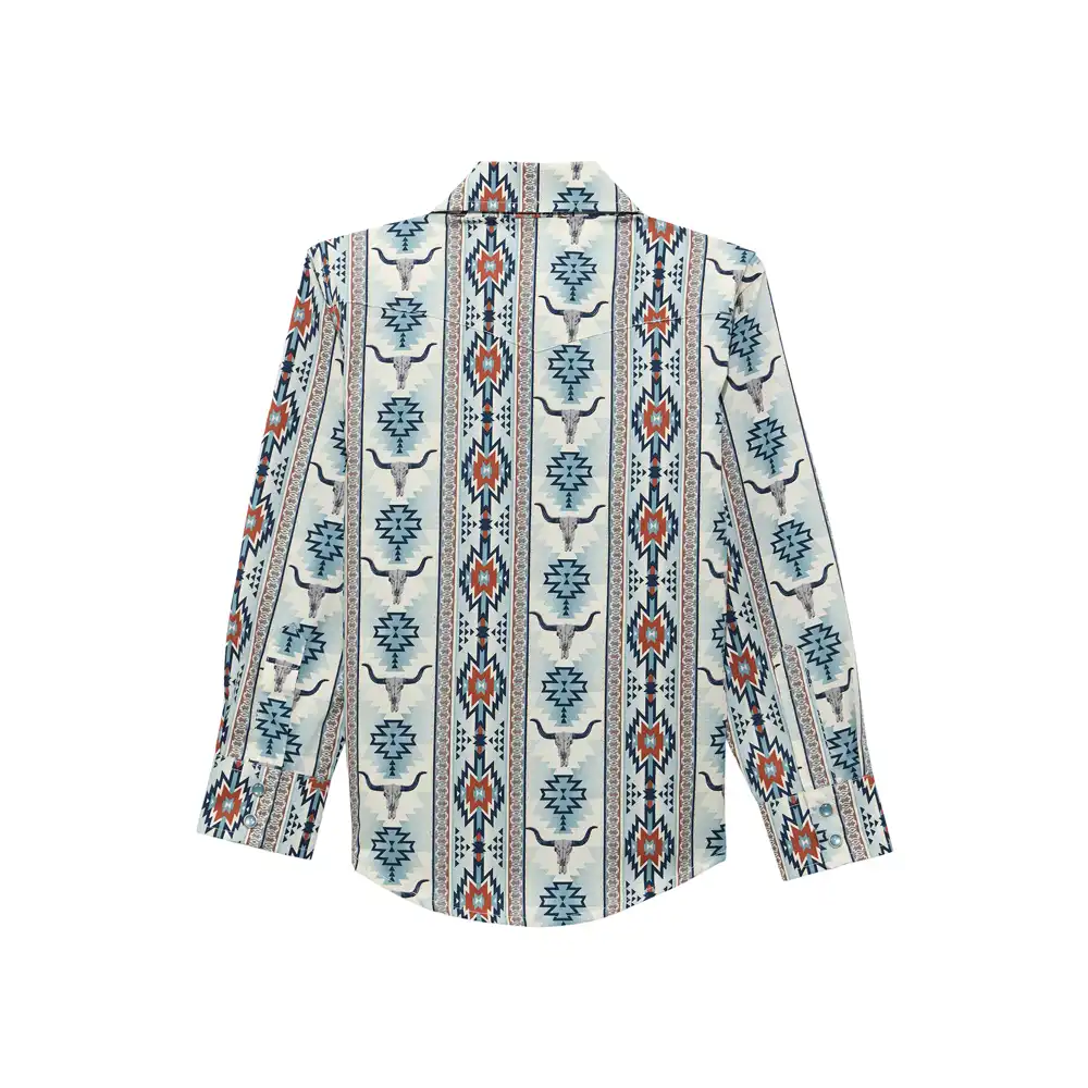 A desert-print motif keeps the frontier spirit alive on this tailored shirt for your little guy. For an authentic cowboy look, it features details such as Western-style yokes, snap closures and flap pockets.