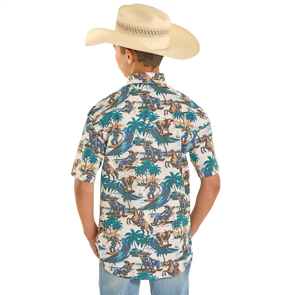 Boy’s Printed Short Sleeve Shirt – Beige