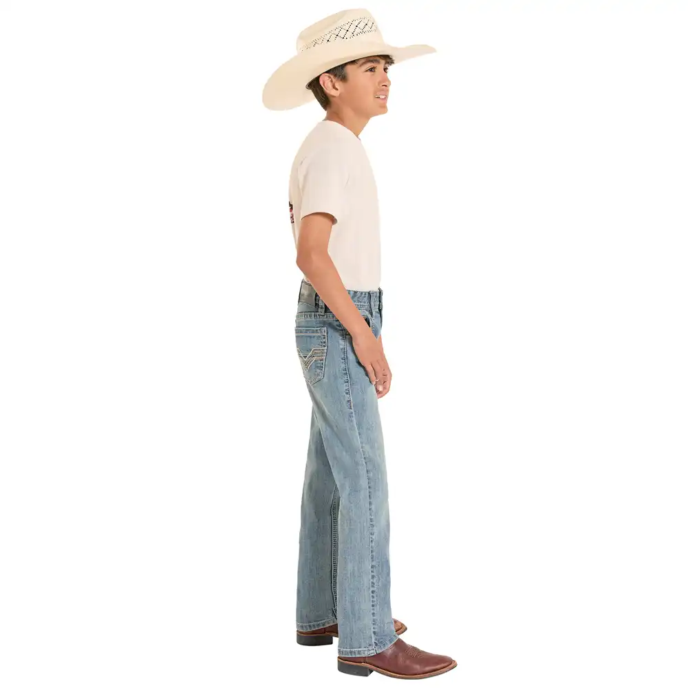 Boy’s Slim Fit Straight – Light Wash Ladder Stitch Embroidered