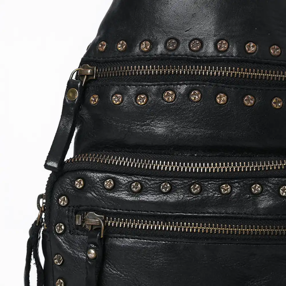 Enhanced with decorative rivets, adding a touch of rugged elegance.