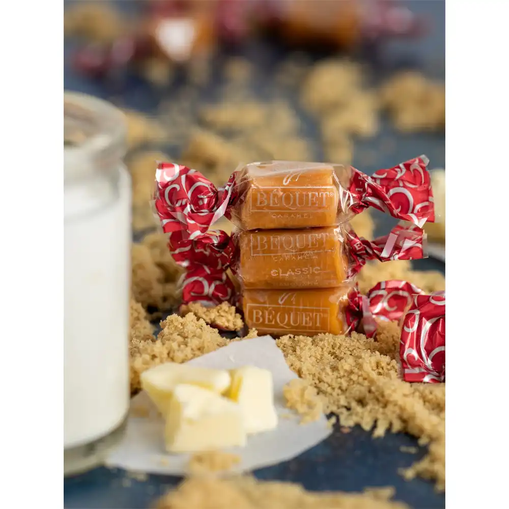 Our goal is to make the very best caramel possible, using the purest, finest ingredients available. If you’ve ever asked yourself, “What is caramel made of?” or “Where does caramel come from?” the answer is simple: Béquet® creates all of its caramel candies with real, wholesome ingredients and artisanal care. We don’t add preservatives, artificial colors or artificial flavors to our caramel. When some of our customers expressed concerns regarding corn syrup, we tested other syrups and found tapioca syrup made an even yummier caramel—we transitioned immediately.
