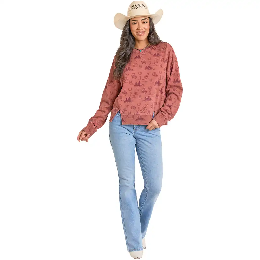 Conversation Print Pullover – Rust