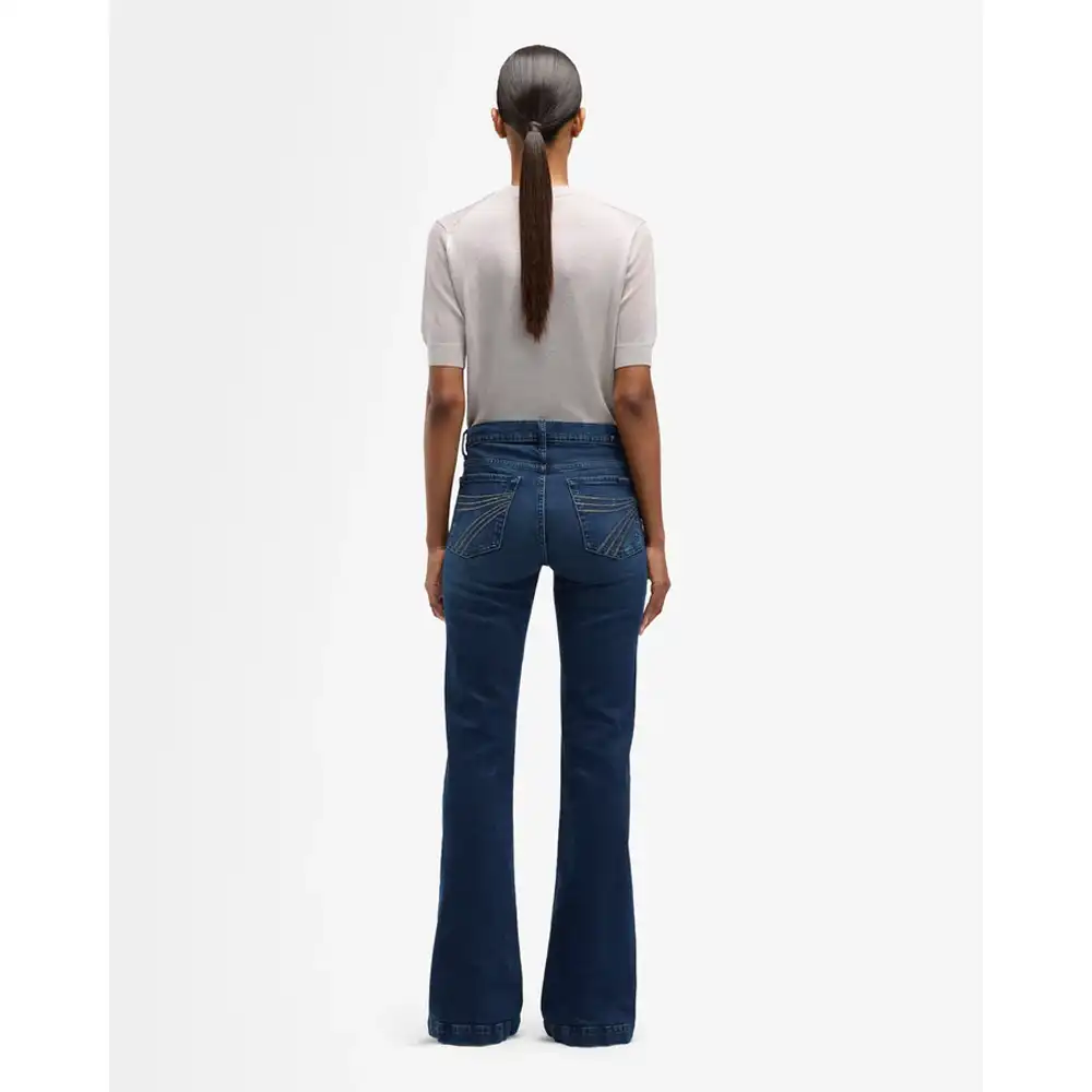 Fits like: Fitted through the hips and thighs. This mid rise denim has a wide, full-length leg and a subtle flare for a long, lean silhouette.