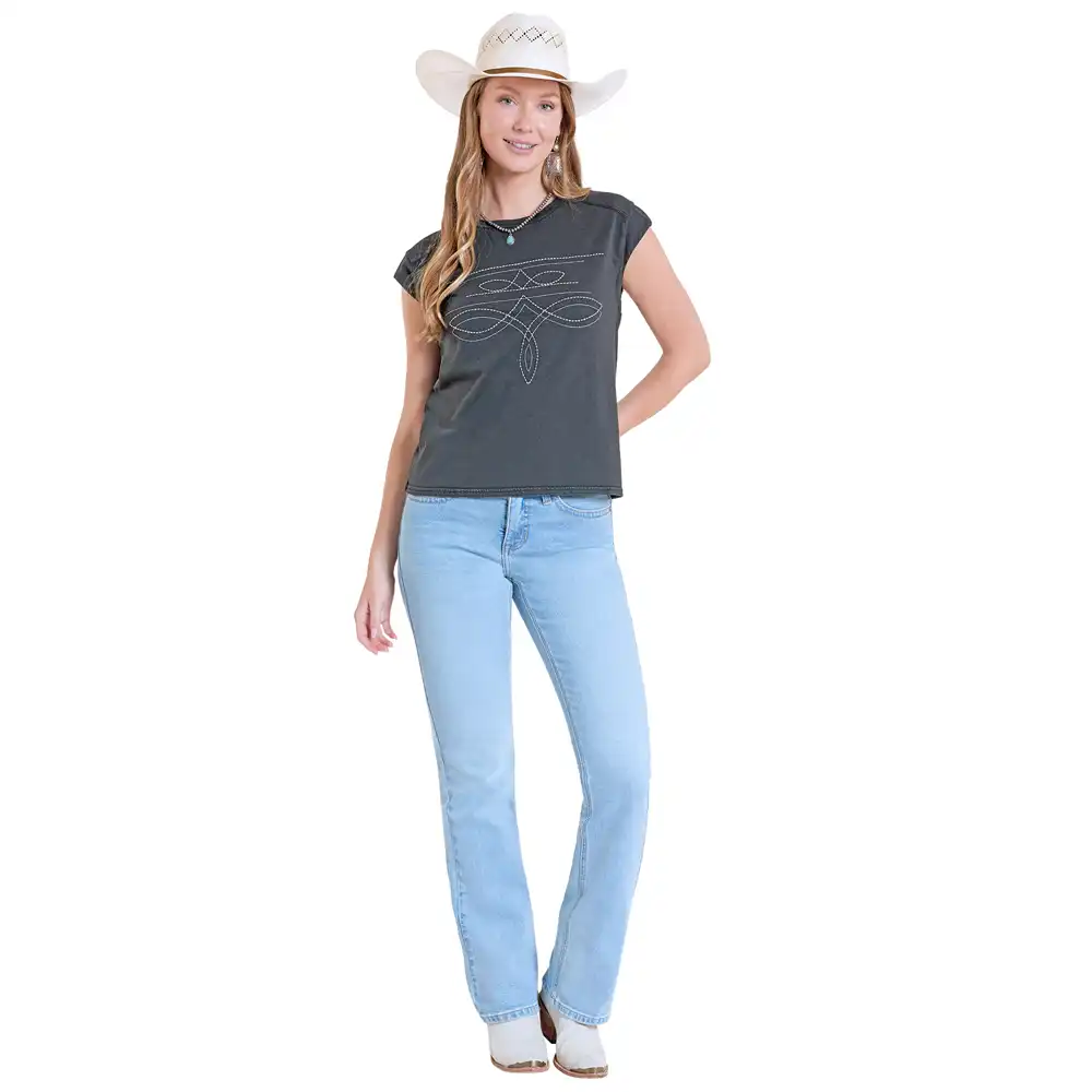 Embroidered Tee Shirt – Boot Stitch Black