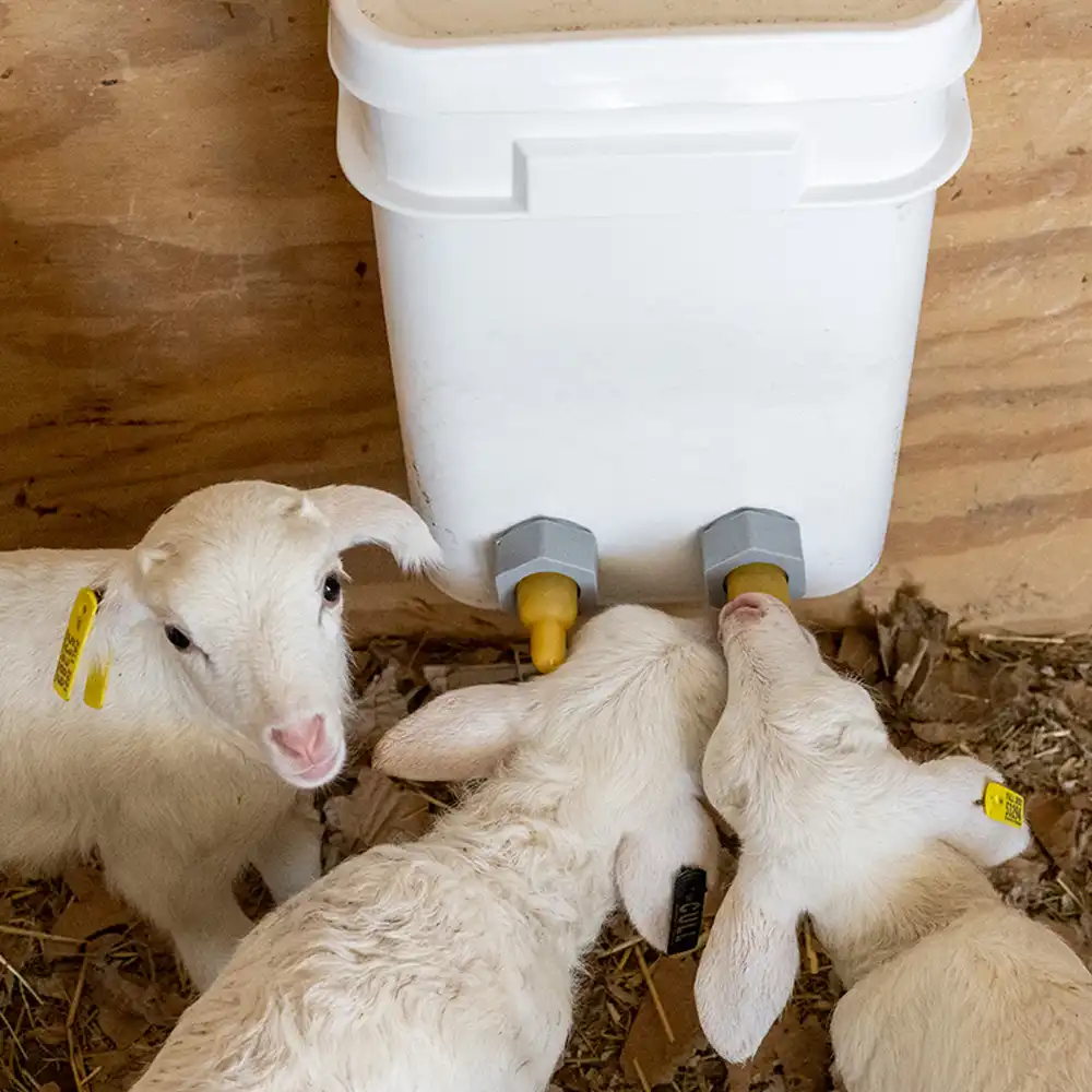 Do NOT leave empty bottles or bucket feeders in the orphan pen. Lambs and kids will chew on nipples (in an attempt to feed) and damage the teats. A habit that is not easily reversed.