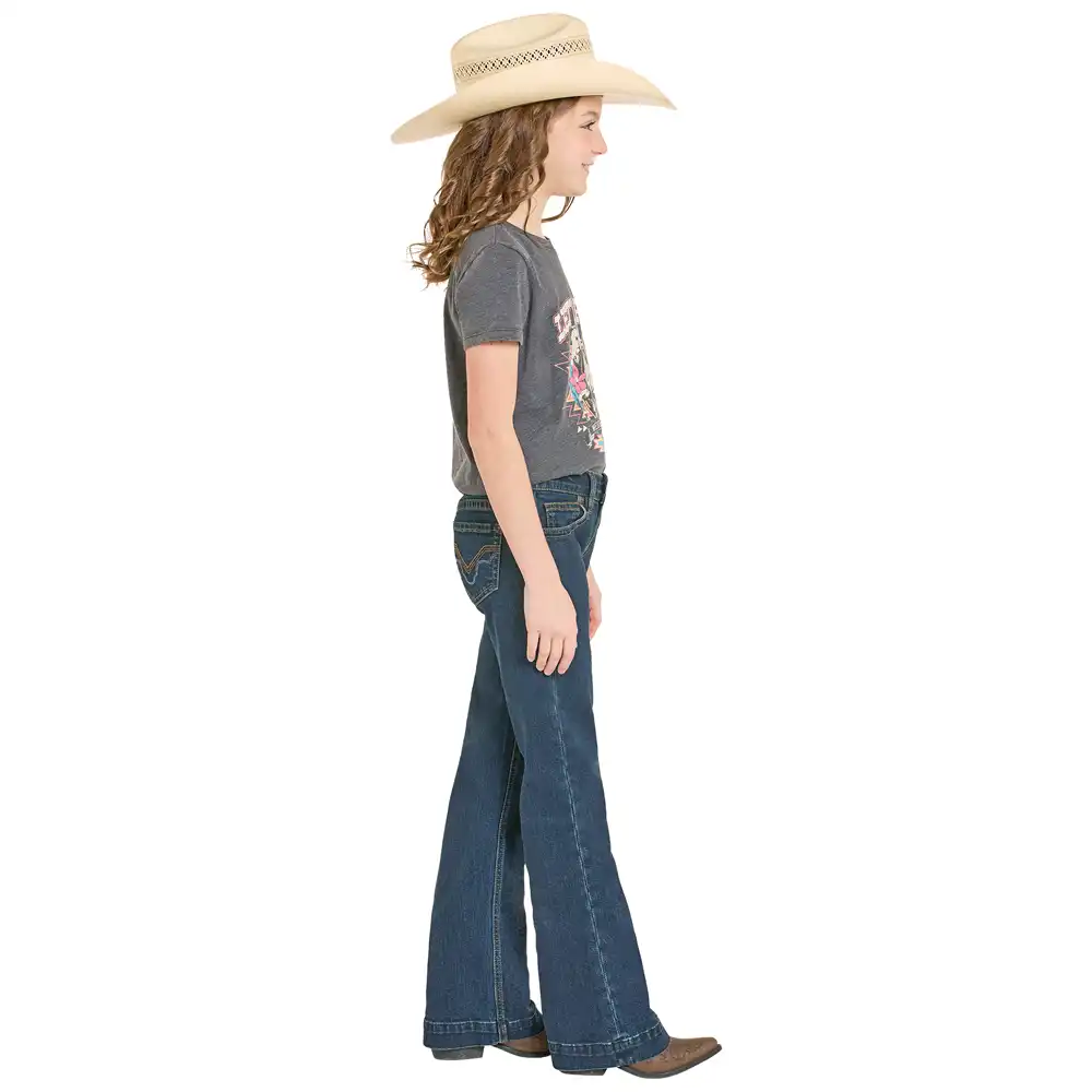 Girl’s Bootstitch Embroidered Trousers – Dark Wash