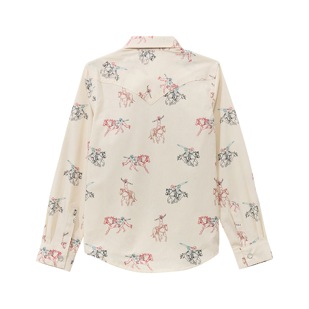 Sheโll look sharp as can be when she wears our Girlโs Long Sleeve Cowgirl Horse Print Western Snap Shirt. Itโs crafted from 100% cotton in a striking hue that will separate her from the pack anywhere she goes. It comes with matching chest flap pockets with our signature โWโ stitching, a pearl snap closure, and a print of serape horses to set the tone for any outfit.