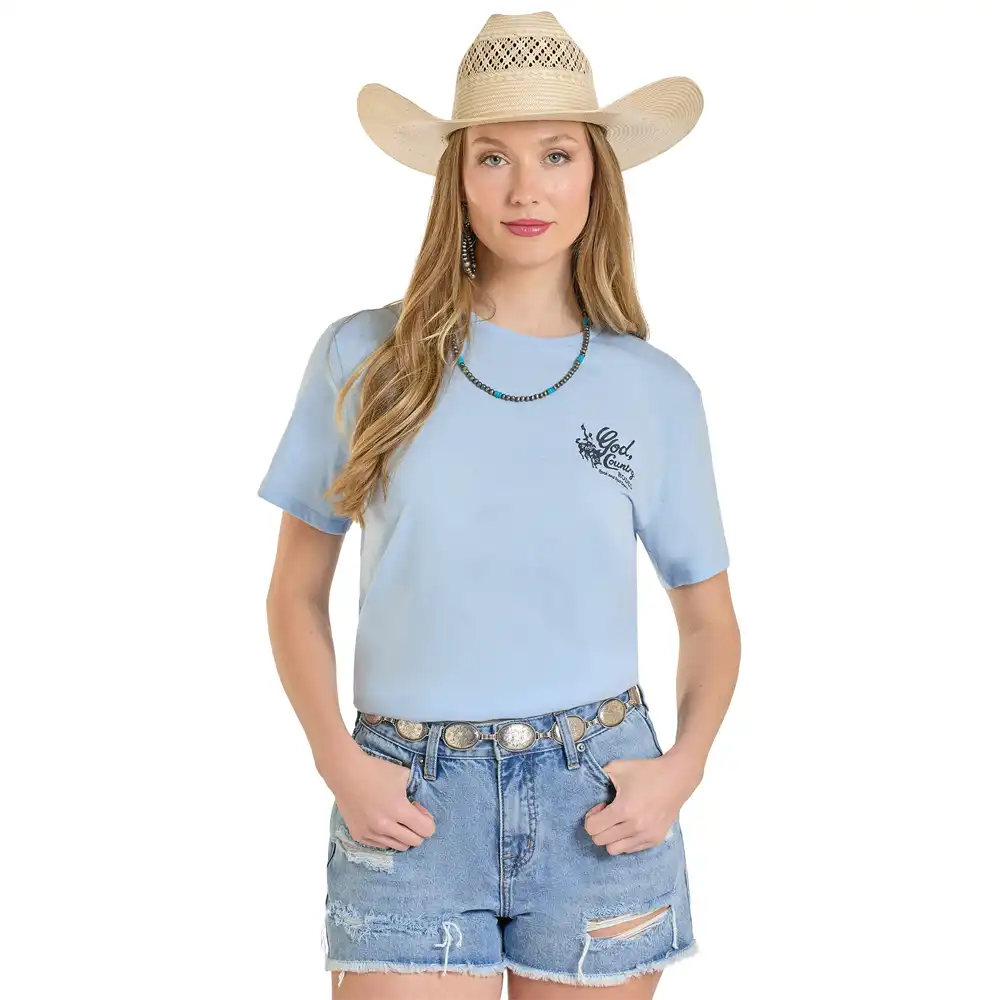 Graphic Tee Shirt – “Bronc Rider” Baby Blue
