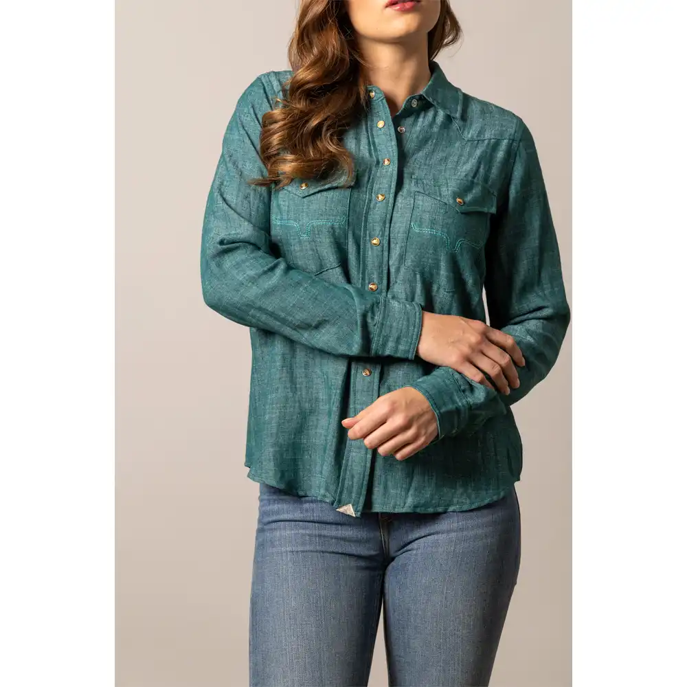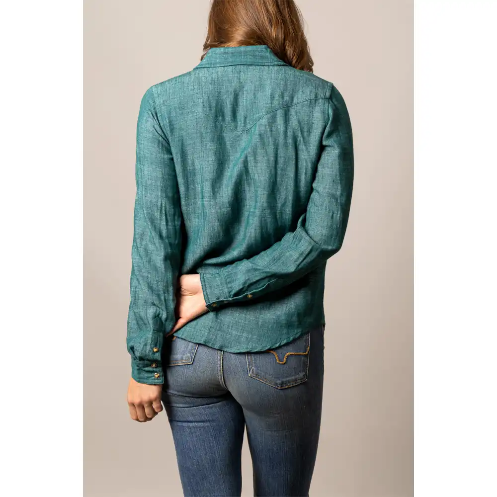 The Lacy blends traditional ranch style with a slightly coastal feel, making it an easy piece to dress up or down. Whether worn tucked into high-rise denim for a classic western look or styled casually with boots and a hat, it brings effortless versatility to any wardrobe.