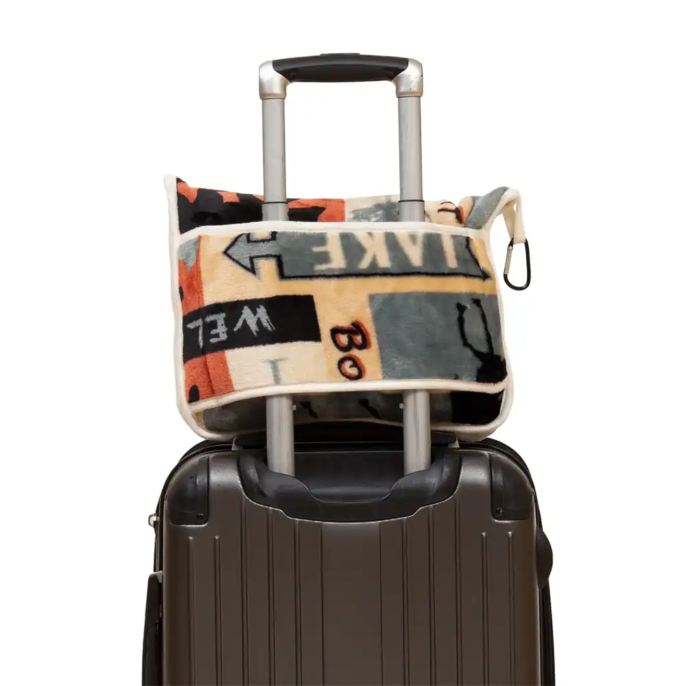 For comfortable travel, no matter how long or short your journey may be, take Carstens plush with you! These blankets pack neatly into a small travel sack that has a suitcase handle strap and a fabric loop with a carabiner for easy hands free carrying.