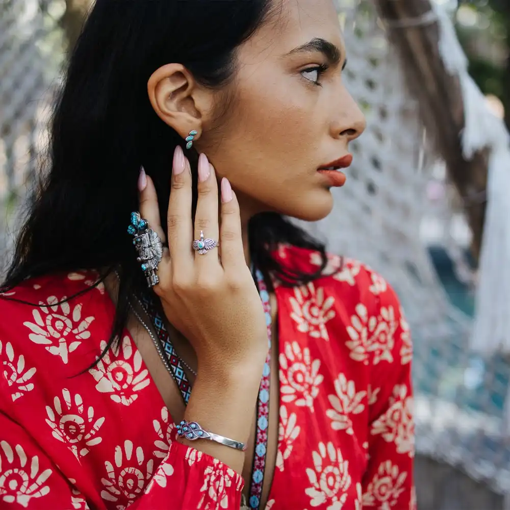 Delicate and full of character, these sterling silver stud earrings feature three marquise-shaped turquoise stones linked vertically for a graceful, feminine look. Their unique design brings a soft pop of color and a subtle western touch, perfect for everyday wear or layering with your favorite pieces. Light, refined, and effortlessly beautiful.