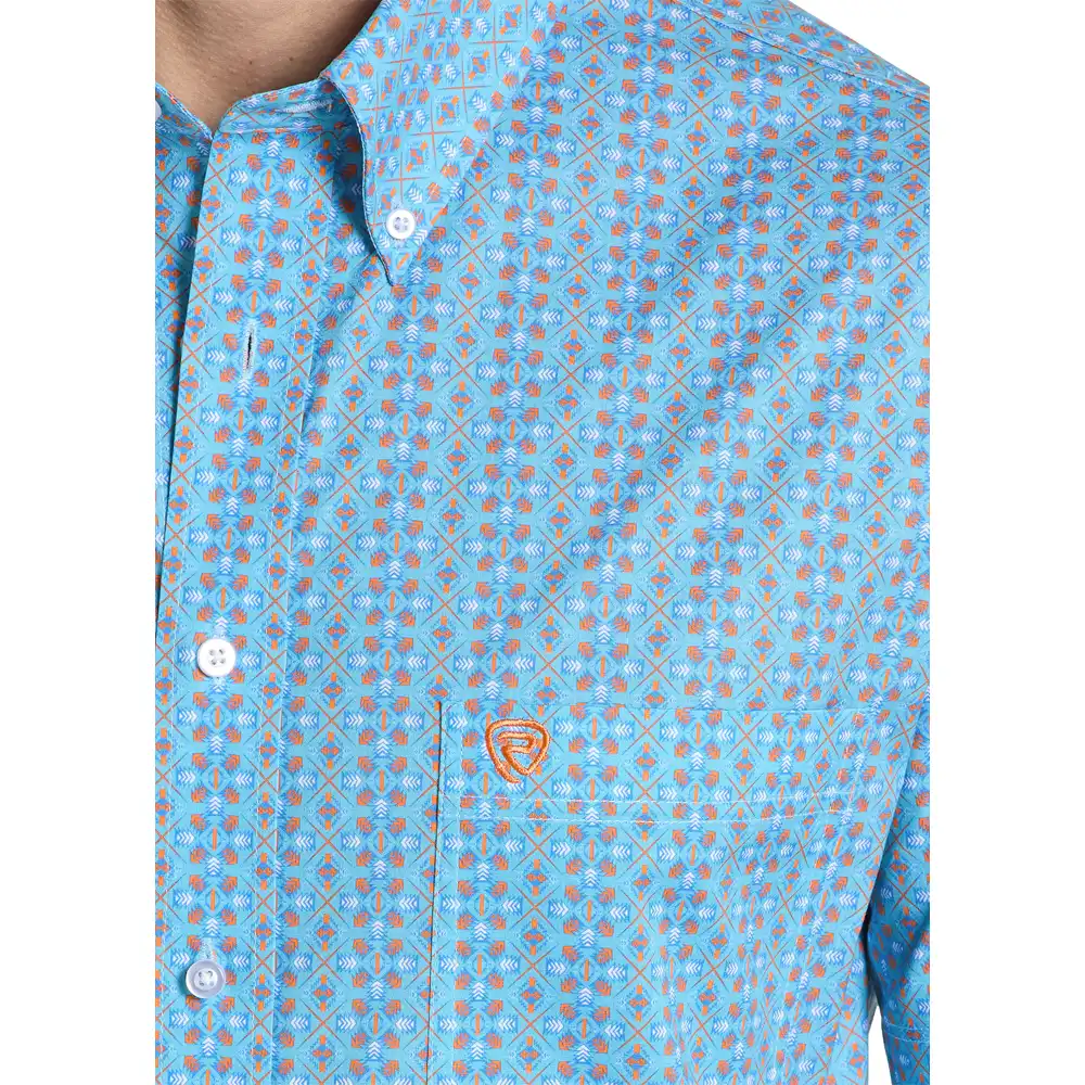Men’s Short Sleeve Shirt – Geometric Printed Aqua