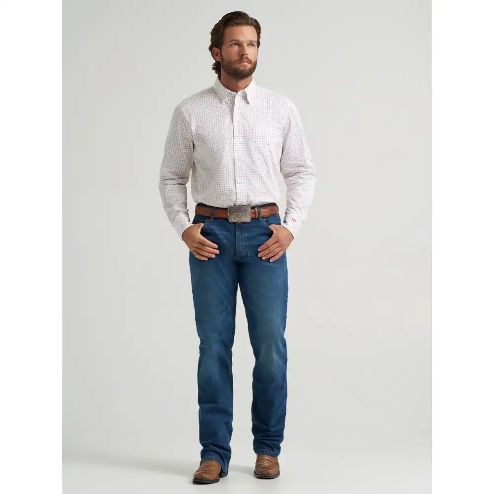 Look sharp while feeling ready for anything in our Cody Johnson One Pocket Button Down Shirt. Inspired and worn by CoJo himself, this collared shirt delivers comfort and style without compromise. A true western original, itโs crafted from cotton for softness and an airy feel from season to season. It features long sleeves, one chest pocket, a hidden button-down collar, and mitered cuffs with the country music starโs signature logo. And its classic fit will seem as if it was made just for you.