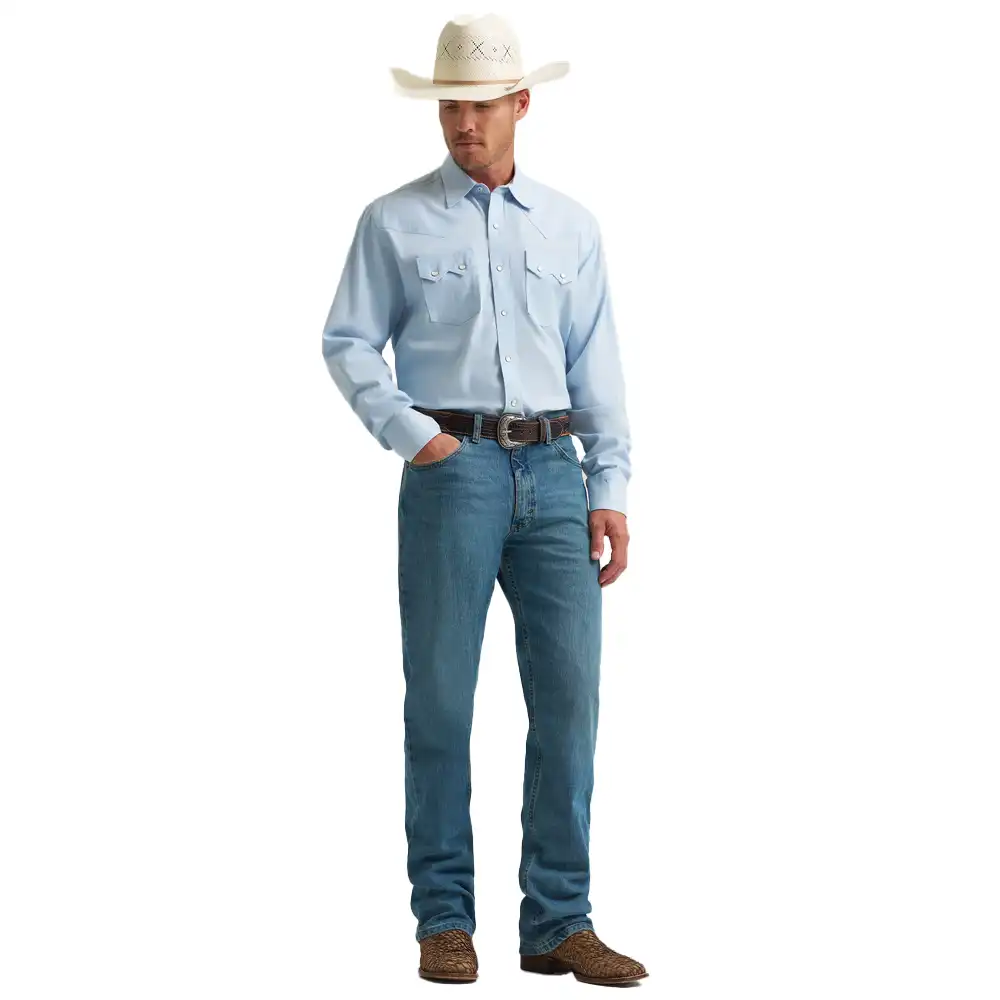 Inspired by COJO himself, our Menโs Cody Johnson Two Pocket Western Snap Shirt will become your new favorite in no time. Itโs made of comfort soft cotton fabric you can wear all year round. This long-sleeve shirt comes with a hidden button-down collar to keep you looking sharp, single-point yokes from front to back, sawtooth flap chest pockets with snaps, and mitered cuffs with the country music starโs signature logo embroidered as his stamp of approval. Plus, its regular fitโs not too tight or too looseโjust right.