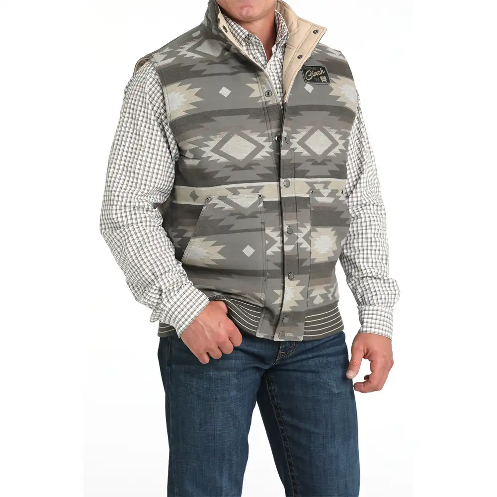 cotton jacquard & poly-cotton wax coated canvas reversible quilted vest