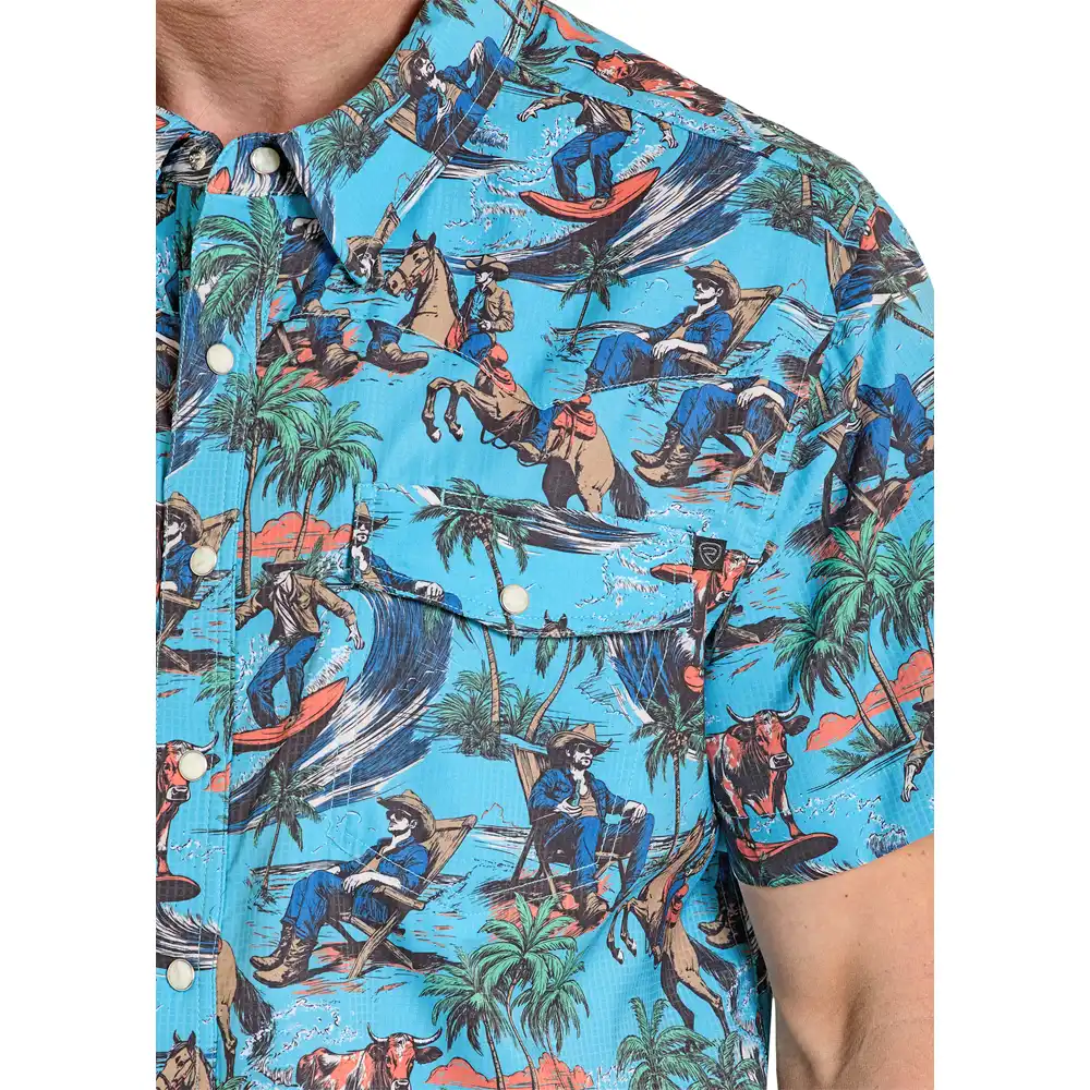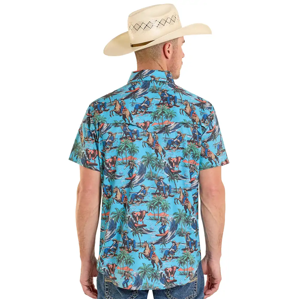 Men’s Short Sleeve Shirt – “Tropical Cowboy” Turquoise