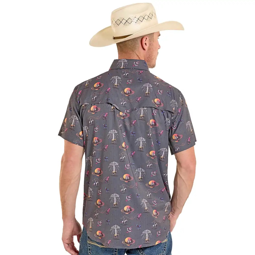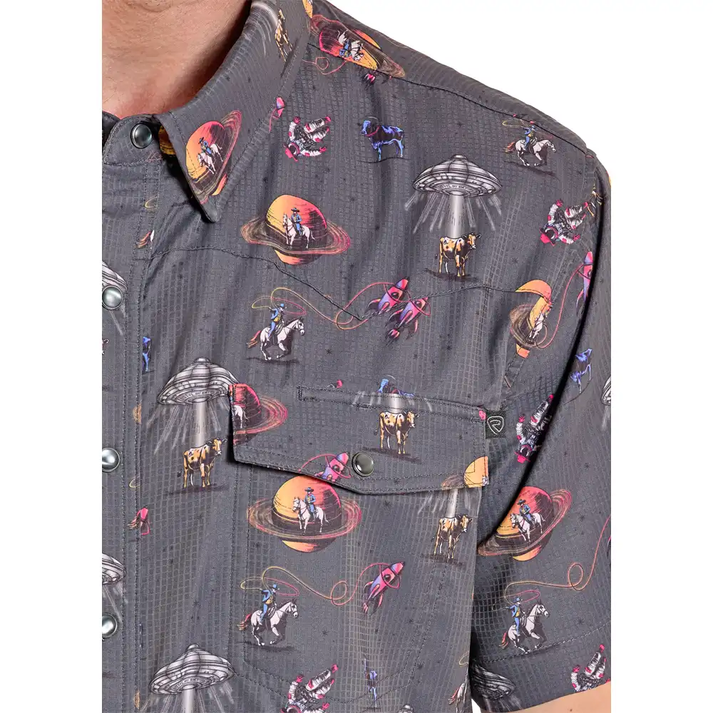 Men’s Short Sleeve Snap Shirt – “Space Cowboy” Grey