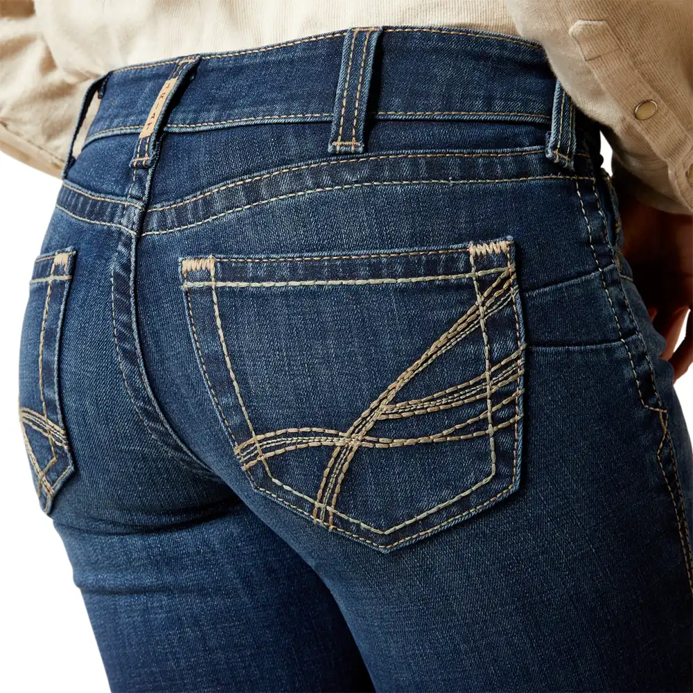 One of our signature fits, this everyday jean pairs our flattering-on-everyone perfect rise with a classic Western leg opening. Quintessential Ariat stitching pops against the medium-blue washโthe perfect complement to your favorite boots.