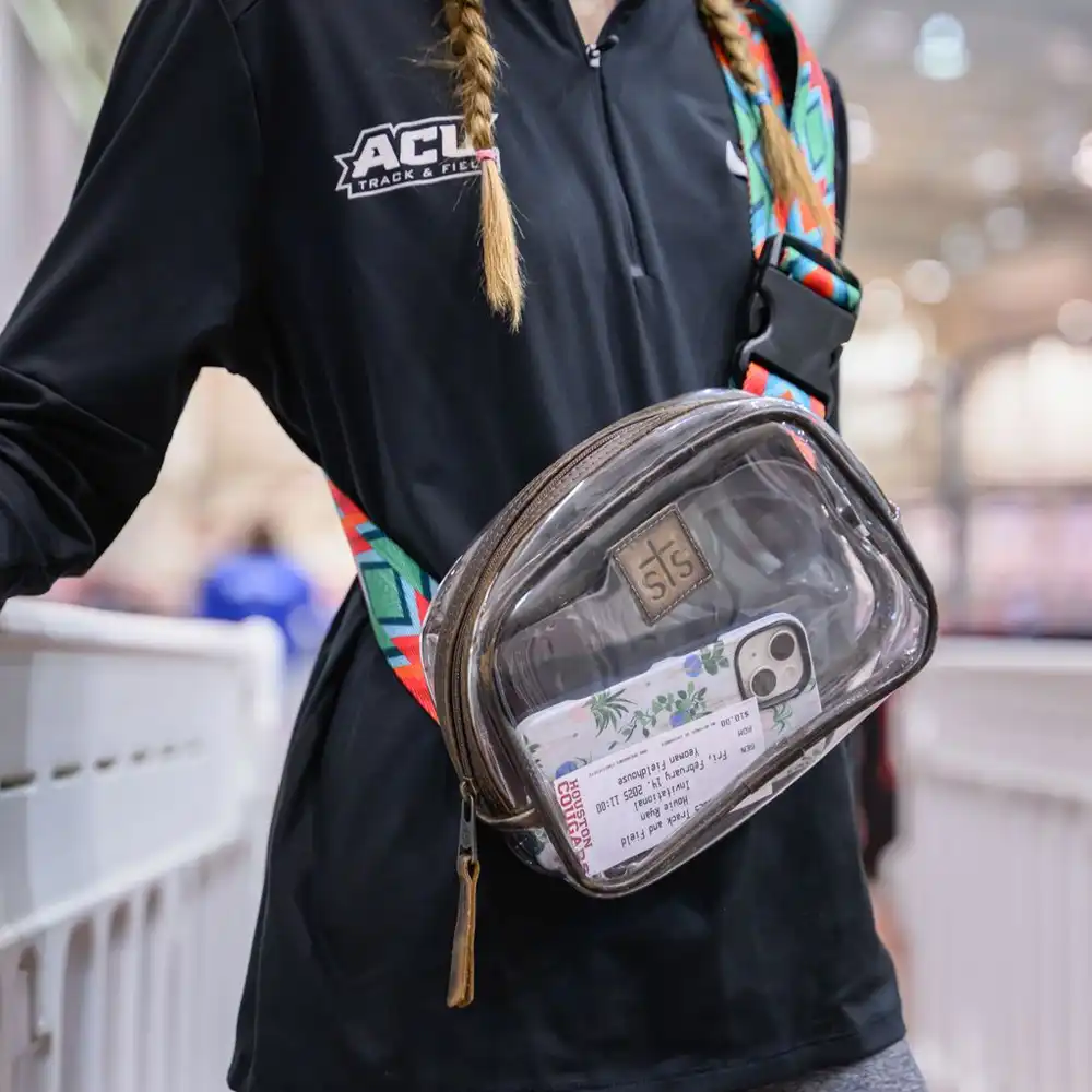 The Stadium Rules Kait Sling is crafted to meet stadiums and large venues clear bag policies with elegance and functionality.