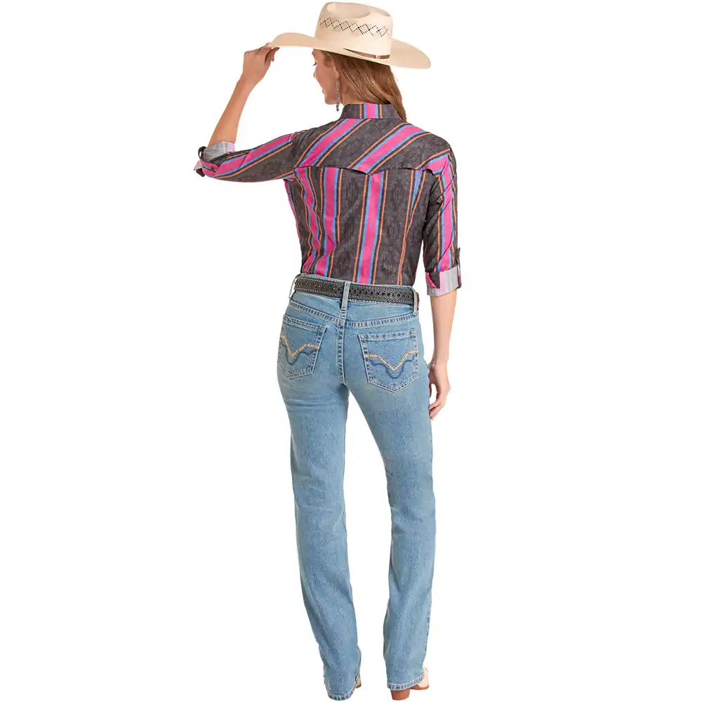 Women’s Aztec Stripe Print – Ripstop – Black & Pink