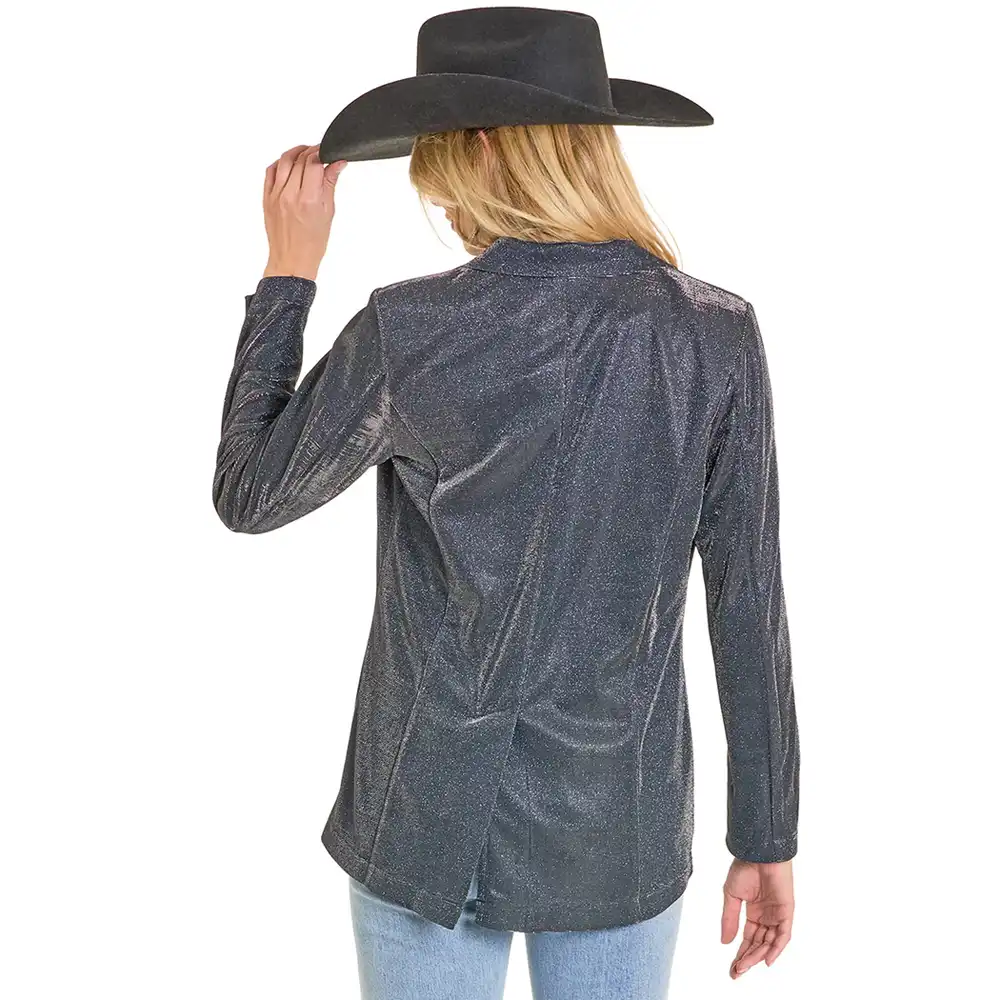 Add a touch of glamour to your wardrobe with our Women’s Shimmer Blazer. Made from 100% polyester, this blazer features a shimmering finish that is perfect for special occasions. The regular fit ensures a flattering silhouette.