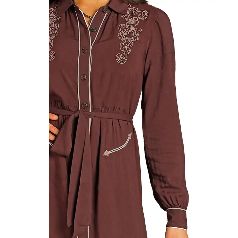 The Embroidered Maxi Dress offers a fresh take on a classic style. Made from 100% rayon, this long-sleeve dress features an embroidered challis material and button closures for a flattering fit. Ideal for any occasion, it provides a chic and comfortable look.
