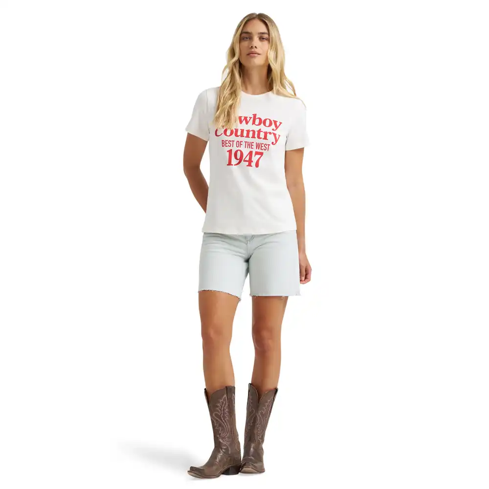 Nodding to the best of cowboy, country, and our Western heritage, itโs a tee that states what itโs about from the very first wear. It features an easy, straight-cut silhouette with a non-fitted waist. Nothing goes better with your Wranglerยฎ denim than a classic crewneck tee.