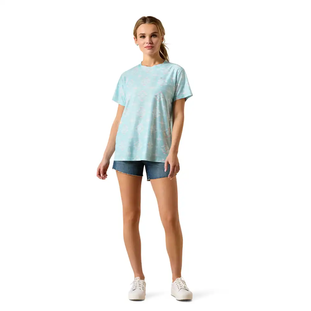 Your go-to tee for hot days. Lightweight, breathable, and sweat-wicking, it has a roomy, relaxed fit and an Ariat logo on the back. Wear it at the barn, in the gym, or around townโit does it all.