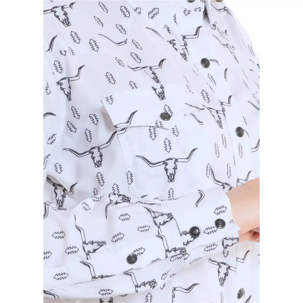 Women’s Western Shirt – Skull Printed White