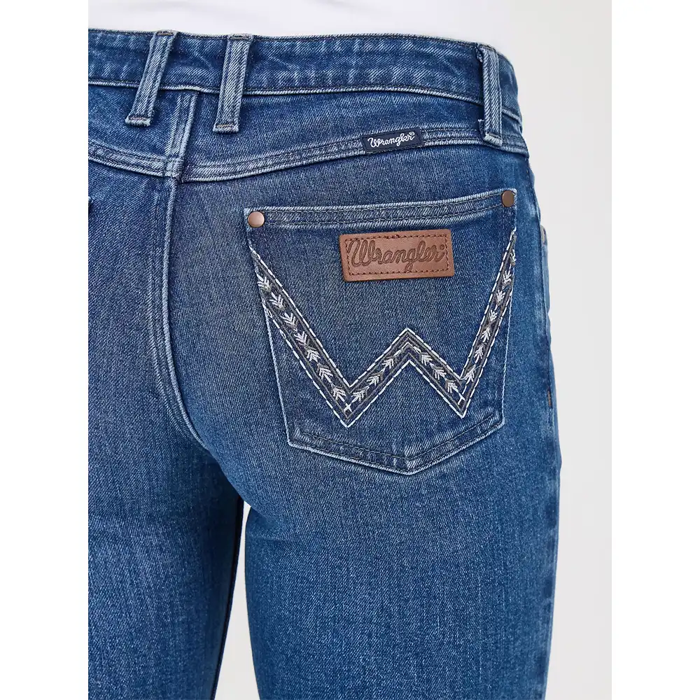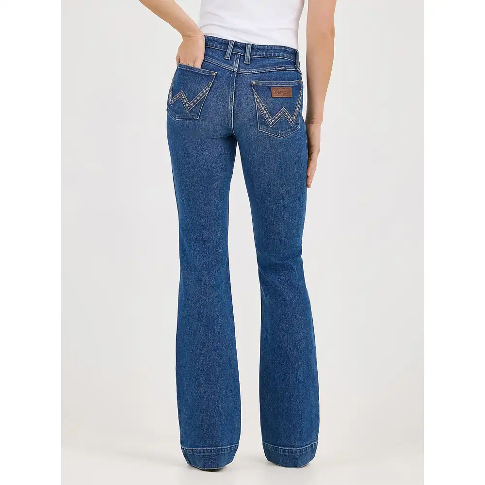 Like all Wrangler Retro® jeans, our Mae wide-leg trouser jean is marked by its Western authenticity, making it a go-to style for cowgirls everywhere. With its contour waist and mid-rise fit, these women’s trouser jeans are made to fit comfortably while they flatter all your curves. With more room at the knee and a gradual opening down the leg, the Mae wide-leg trouser gives you the room you need to stay active and in style.