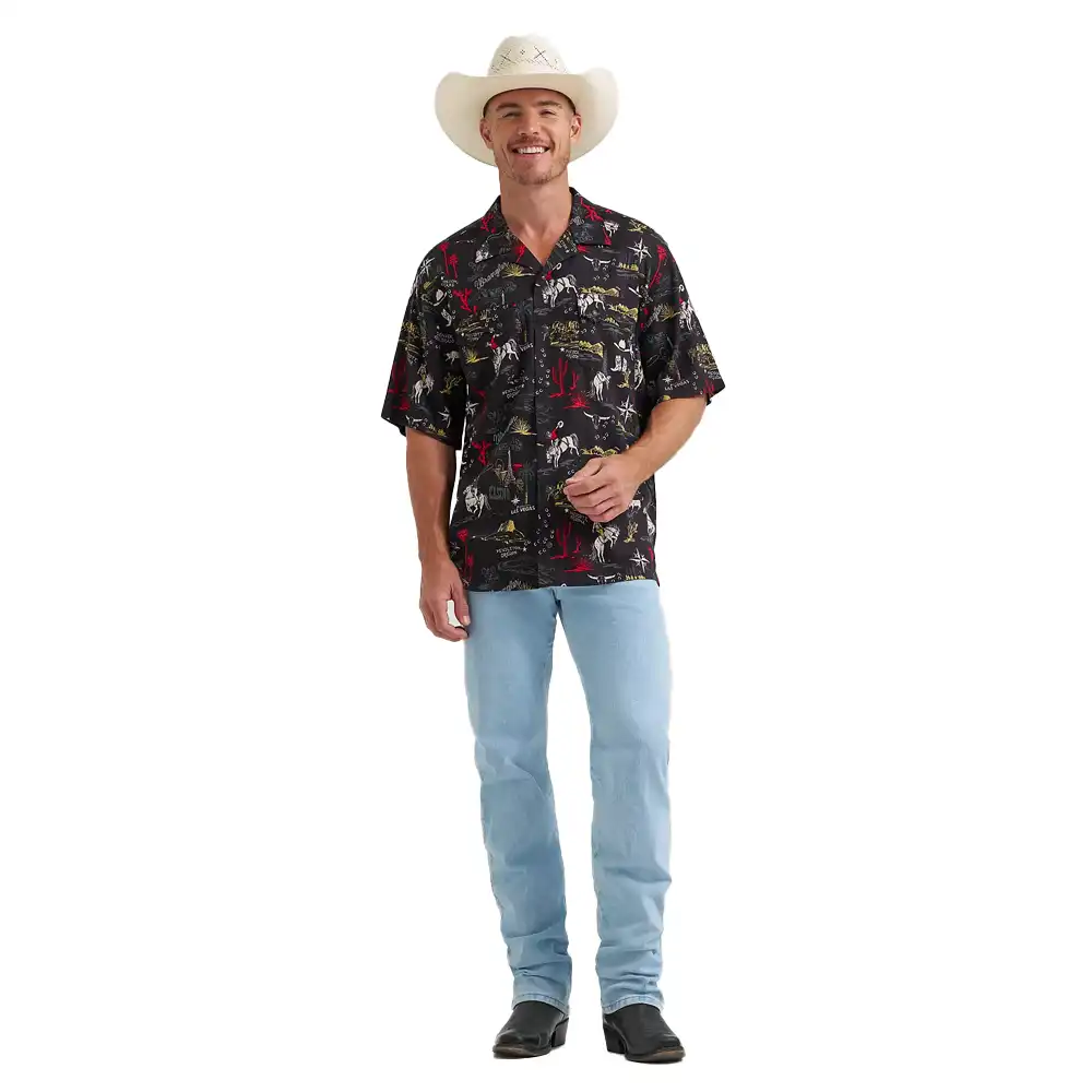 Casual and carefree, Wrangler’s Coconut Cowboy snap-front camp shirt looks to the rich textures and colors in the world around us for inspiration. Taking cue from the classic Hawaiian shirt, this beachside button-up comes with a traditional spread collar, two snap flap pockets, a straight hem, and a bold tropical print with traces of our western roots throughout. It’s crafted from a lightweight cotton blend to keep you comfortable in the warm days ahead. Finish the look with your favorite Wrangler® jeans or cargo shorts for the ultimate weekend look or for any day of the week.
