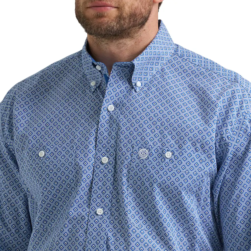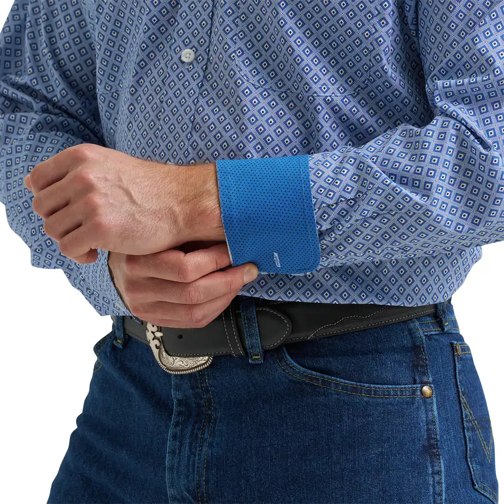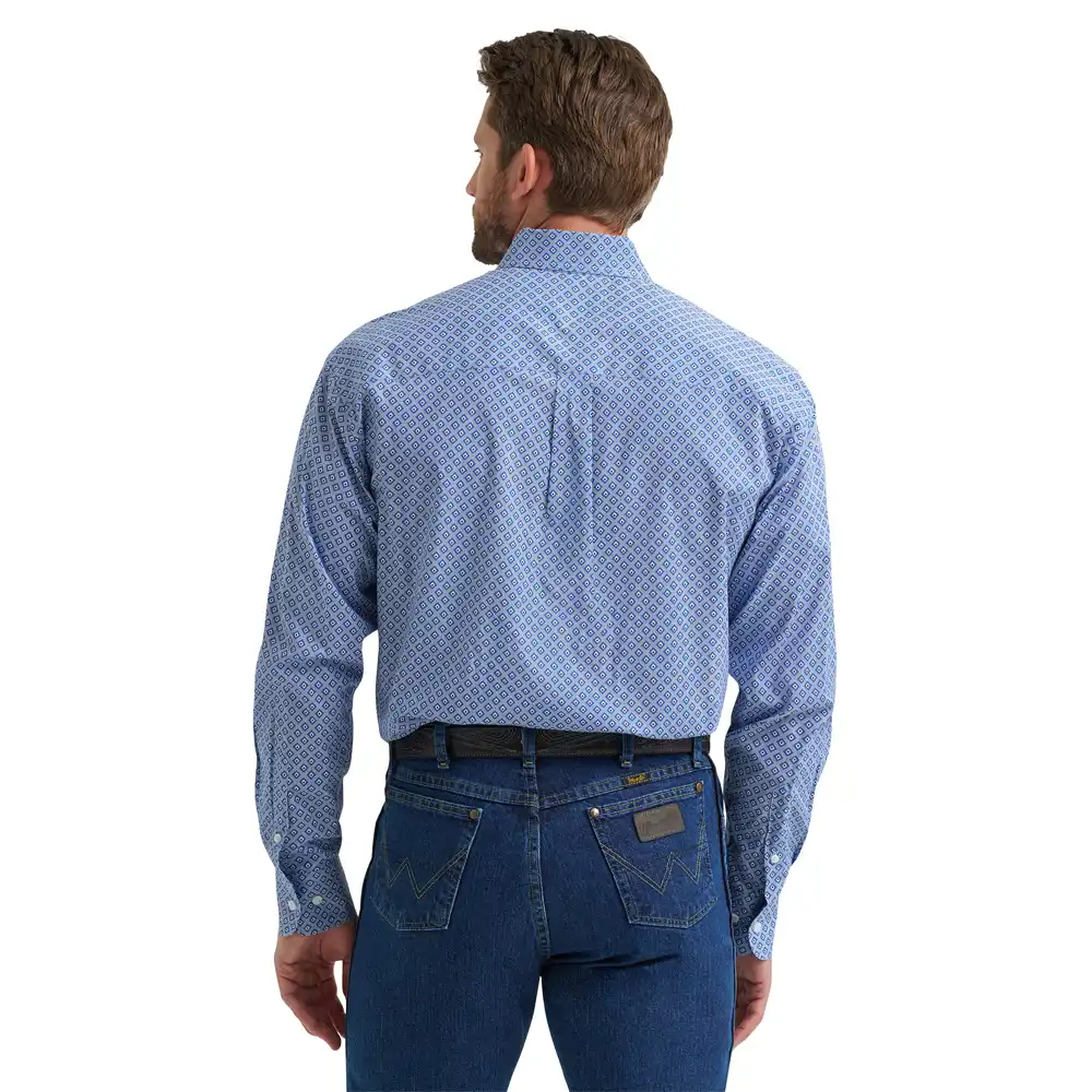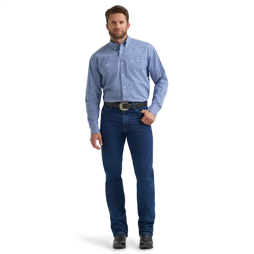 When it comes to casual style that rises to every occasion, nothings beats the George Strait™ Two-Pocket Button-Down Shirt. This long-sleeve button-down features a straight back yoke, two button-through pockets, adjustable cuffs, a curved hem, and a relaxed fit that feels roomy throughout. Best of all, it’s woven from a comfortable cotton blend you can wear all day long.