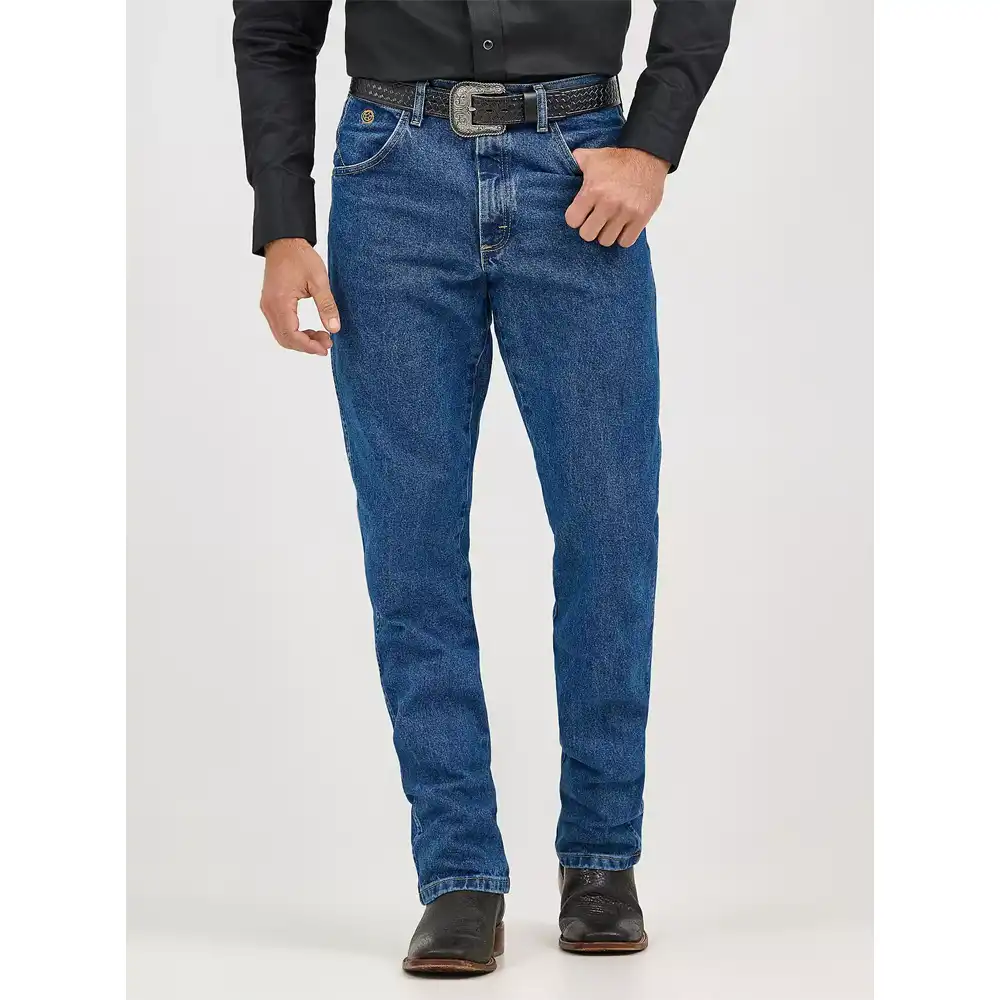 Just like every chart-topping hit sung by the ‘King of Country’, our George Straight Cowboy Cut® jeans are an instant classic. Since 1947, the 11MWZ Cowboy Cut® jean has been a tried-and-true wardrobe staple for cowboys and rodeo stars alike. Today, legendary style meets legendary comfort in every pair of men’s George Straight Cowboy Cut® relaxed fit jeans. These iconic jeans come with all the authentic Wrangler® details you know and love, including our signature five-pocket styling, ‘W’ stitching, and leather patch, but that’s not all. Our Cowboy Cut® George Strait relaxed fit jeans are made of 100% cotton and come with a high rise as well as some extra room in the seat, thigh, and knee.