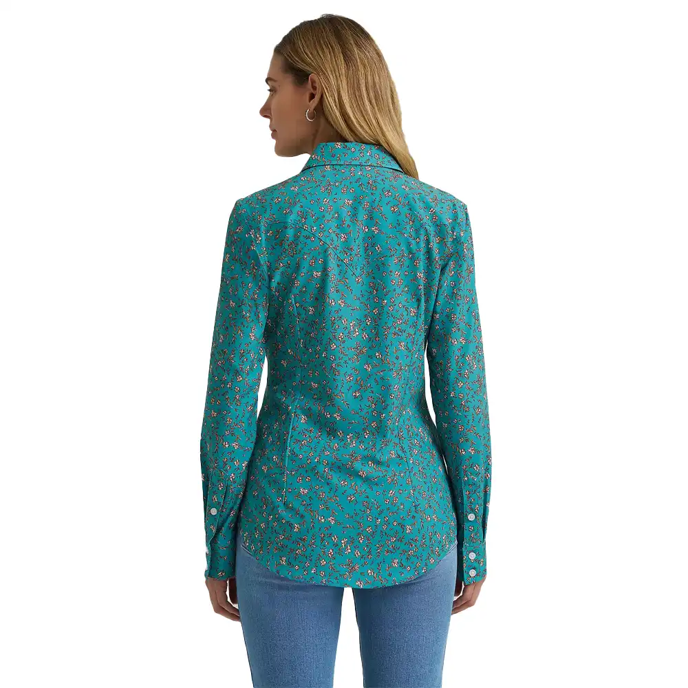 Stay cool and confident during every ride with the Wrangler® Aria Performance Shirt. Made for days spent in the saddle, this Western-inspired style will keep up no matter the pace. It’s crafted from a moisture-wicking, quick-drying fabric with two-way stretch for flexibility and built-in UV protection to shield you from the sun’s rays. The faux placket delivers a secure, gap-free fit so you can stay in the moment. Finished in a dynamic print and authentic Western details, this long-sleeve button-up is built for performance without sacrificing that classic look you love—perfect for the arena or any demanding day on the ranch.