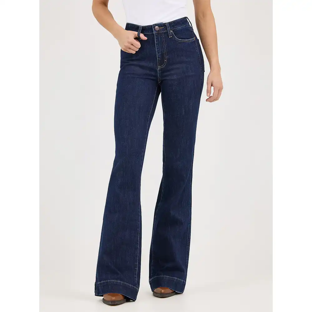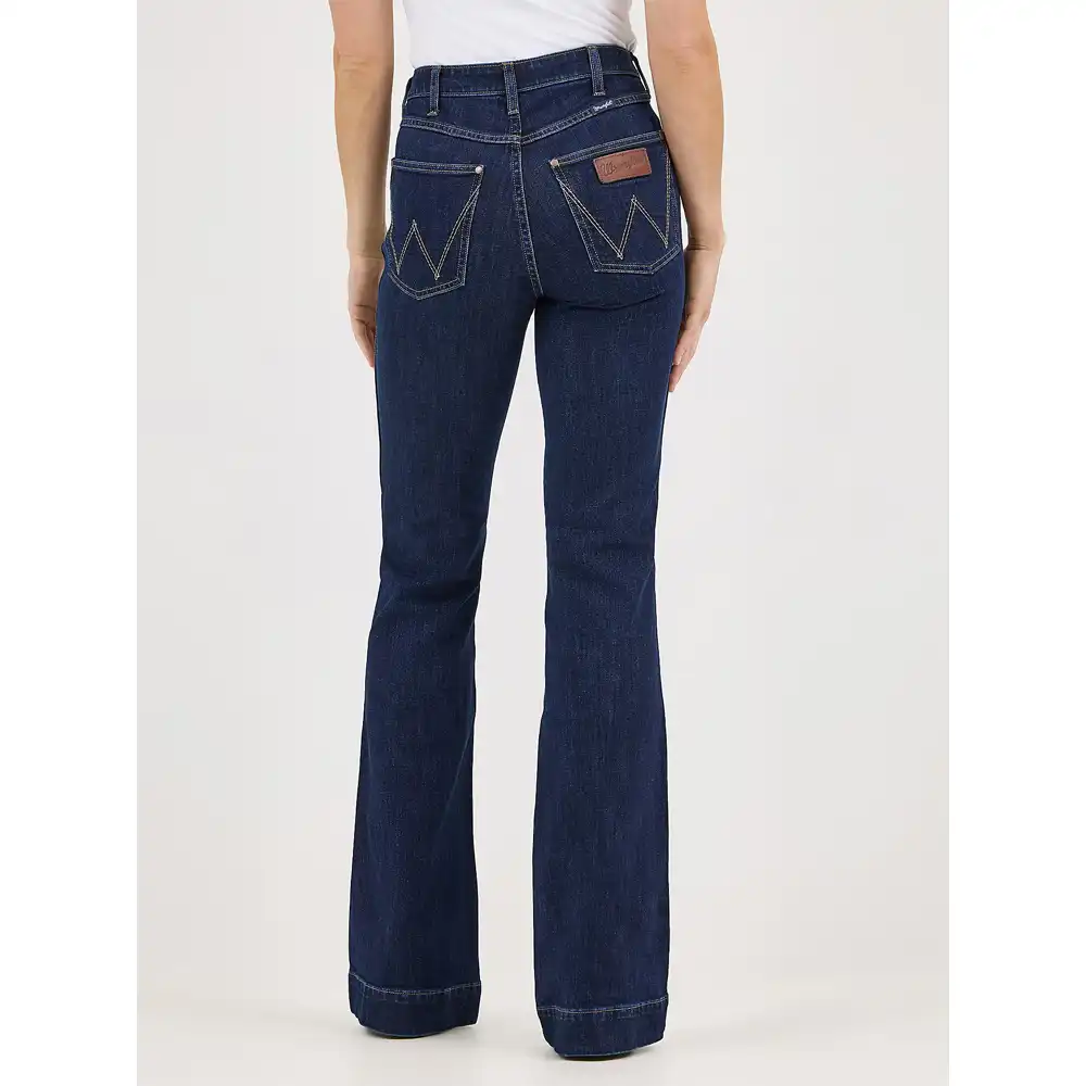 Flattering from every angle, the Women’s Wrangler Retro® Bailey High Rise Trouser Jean is a best-kept secret for ladies who love volume. These denim trousers are crafted from a cotton blend with just a hint of stretch for all-day comfort. They come with a high-rise silhouette, a close fit through the thigh, and a 20.5” flared leg full of vintage vibes. Plus, the five-pocket styling, “W” pocket stitching, and logo patch bring an unmatched level of Western authenticity.