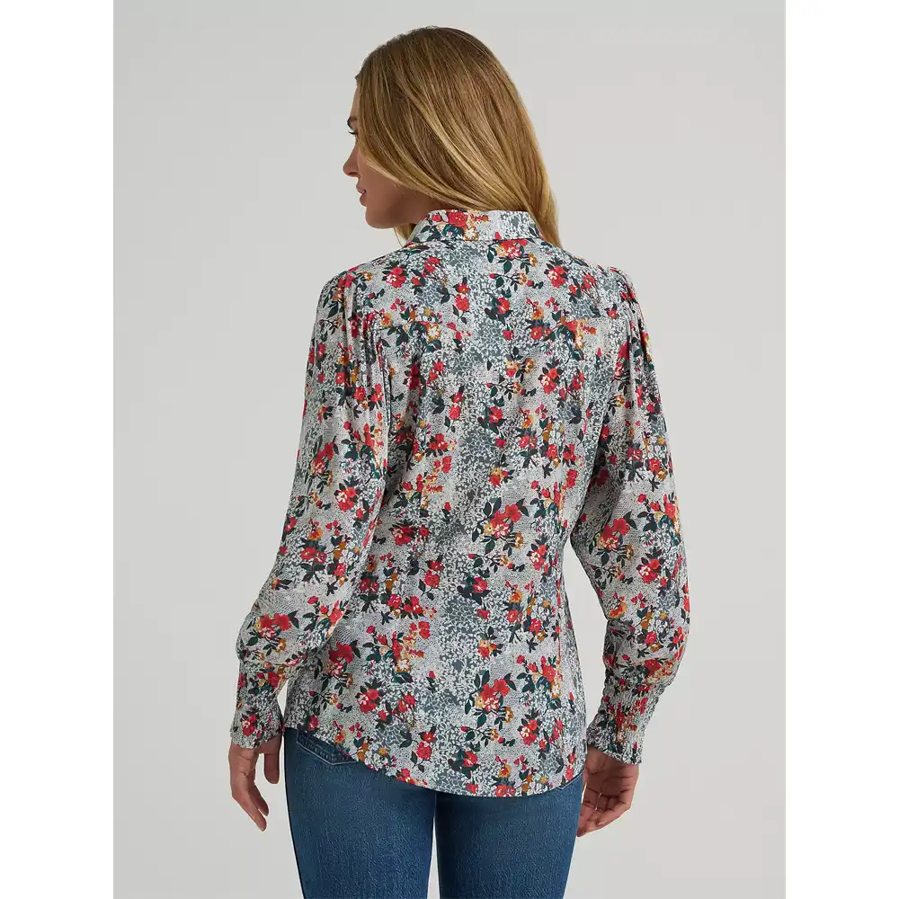 Forever in season, the Women’s Wrangler Retro® Western Snap Slim Fit Blouse will add the perfect amount of vintage flair and colorful florals to your look. It features a figure-flattering silhouette that works solo or layered into your outfit, complete with puff sleeves and smocked cuffs. It’s finished with all the iconic details, including single-point yokes, chest pockets with the ‘W’ stitching, and pearl snaps, for a bold yet timeless style.