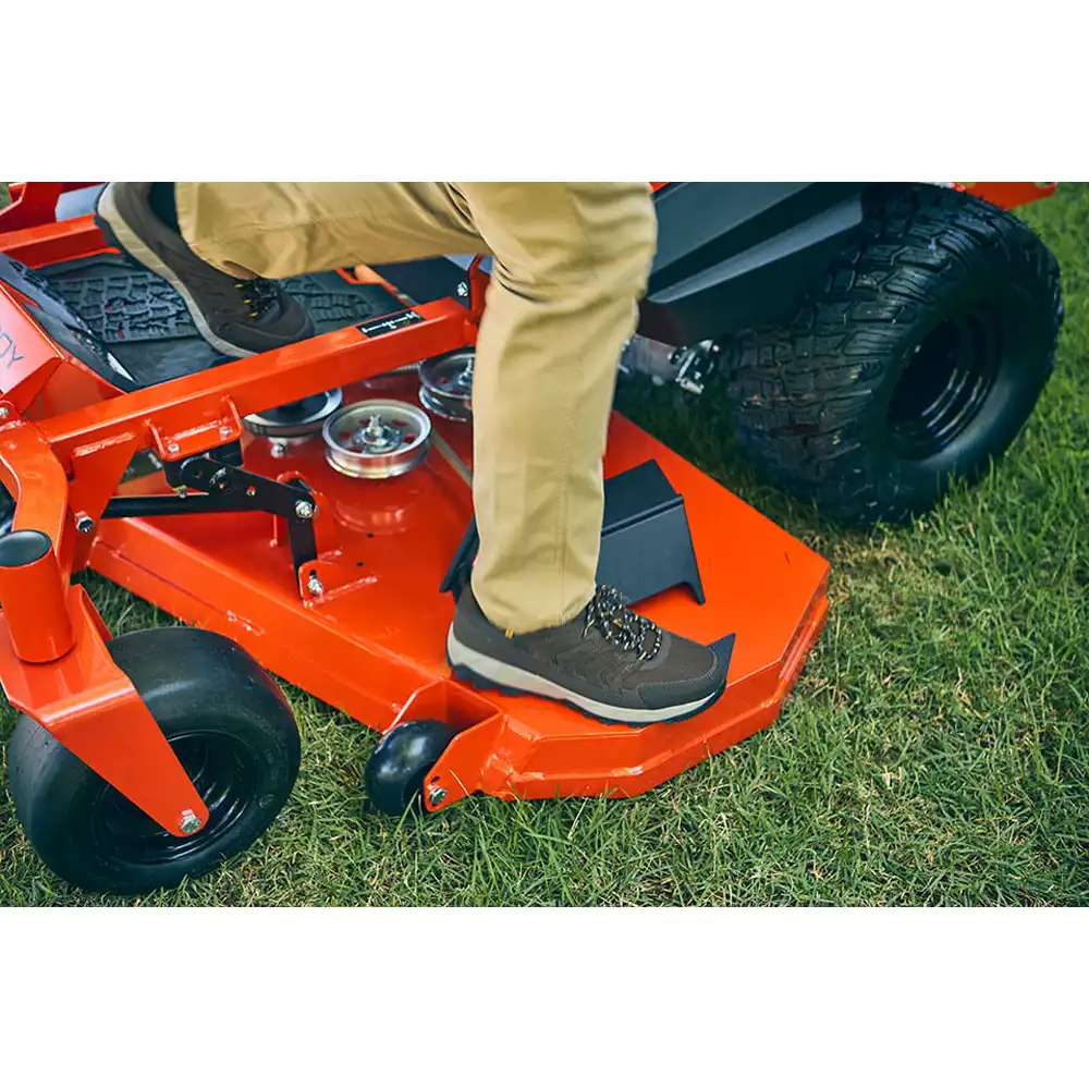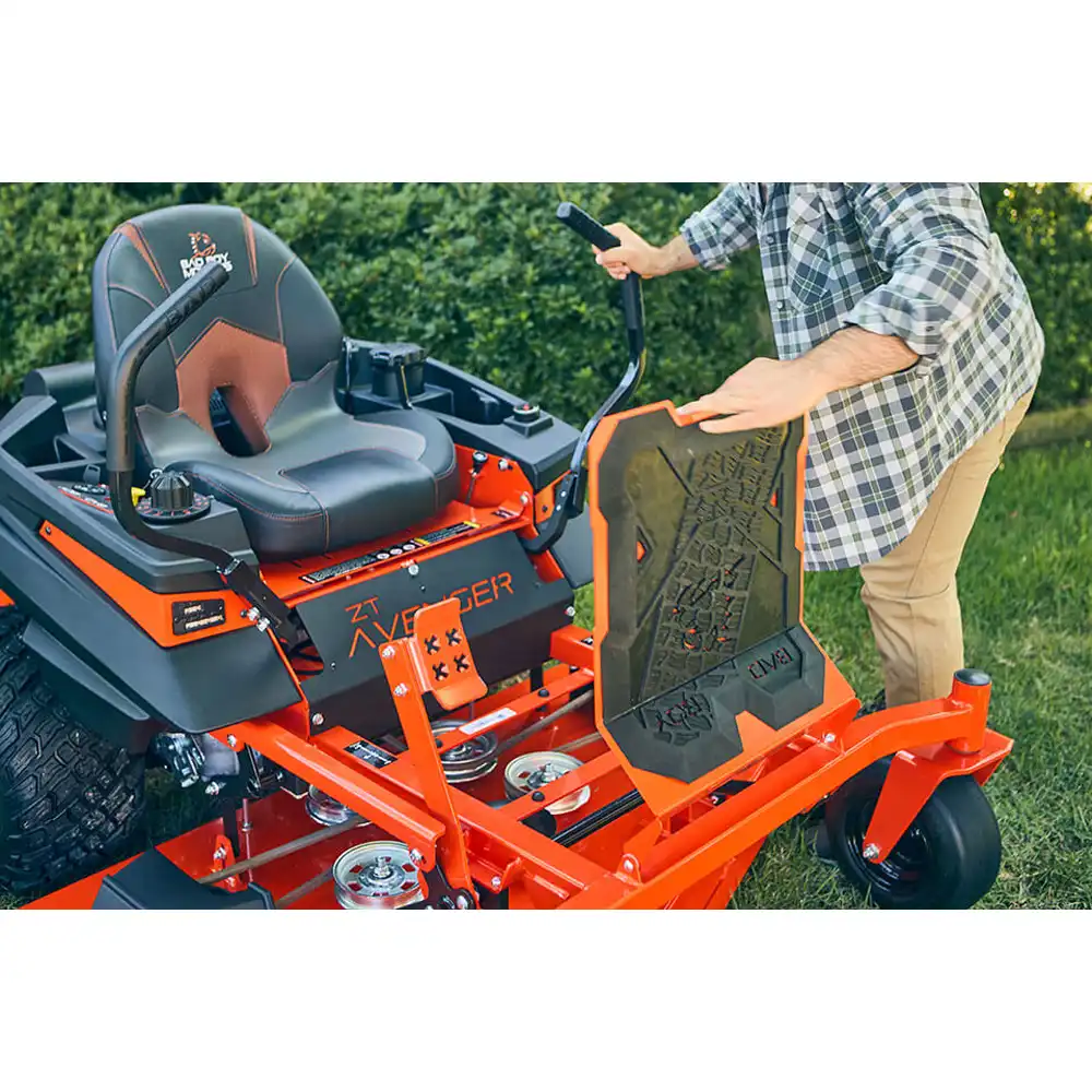 The ZT Avenger sports the same quality and durability of every Bad Boy Mower before it, with all the power and performance you’d expect, along with all-new LED tank lights, new Reaperยฎ tires, upgraded gas tanks, and a redesigned floor matโall at a price you probably wouldnโt expect. We’re known for building the sturdiest decks in the industry. Step on the all-new sloped deck of the ZT Avenger and compare it to other mowers in this price range. You’ll feel the difference of our all steel, all welded deck strength in no time. The floorboard lifts up to expose most serviceable components to make cleaning and maintenance even more convenient. The no-slip mat is attached directly to floorboard, so you know it’ll stay in place.